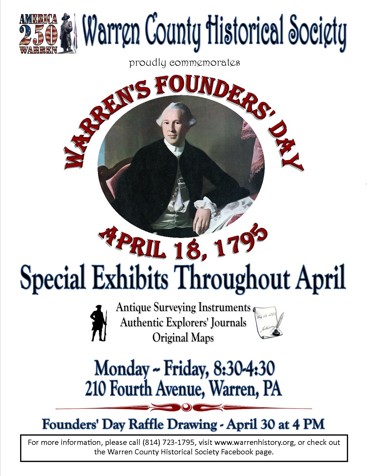 Warren's Founders' Day Raffle Drawing April 30, 2026, at 4 PM Warren County Historical Society 210 Fourth Avenue, Warren, PA